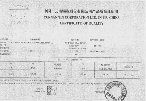 主要用途:主要用于無氰電鍍的鍍錫,用作牙膏的填充劑,在牙膏中微有離解,對于防止牙病有一定作用。