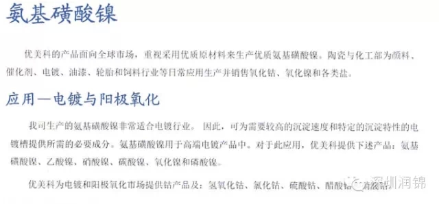 優(yōu)美科氨基磺酸鎳的應(yīng)用: