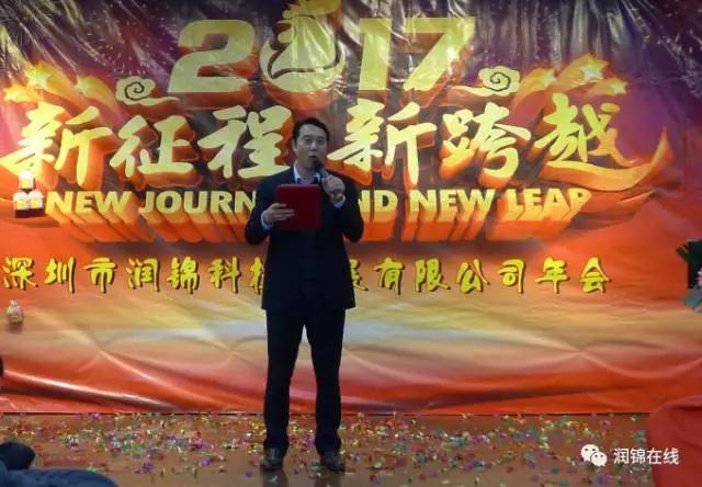在開場舞蹈《開門紅》烘托出熱鬧氛圍中,請出了楊總發(fā)表賀詞。楊總在發(fā)言中肯定了潤錦人在2016年度和過去的十年里通過努力和付出創(chuàng)造出不凡的業(yè)績,提出了在新環(huán)境新形勢下更要積極主動創(chuàng)造新的輝煌。“新征程、新跨越”,潤錦人攜手并進。